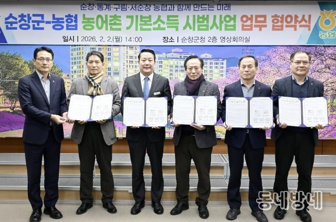 동네방네 김형규 기자 | 순창군은 농어촌 기본소득 시범사업의 안정적인 추진을 위해 2일 군청 2층 영상회의실에서 NH농협 순창·동계·구림·서순창농협과 업무협약을 체결했다.