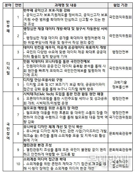 대한민국 정부는 2011년 국제협의체인 ‘열린정부파트너십(OGP)’에 가입한 이래, 정부 개방과 반부패, 국민참여 증진을 위한 실행계획을 꾸준히 이행하고, 관련 성과를 국제사회와 공유해 왔다.