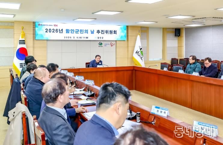 동네방네 김형규 기자 | 함안군은 2026년 함안군민의 날 행사를 성공적으로 개최하기 위해 지난 4일 군청 별관 3층 중회의실에서 조근제 함안군수를 위원장으로 한 ‘2026년 함안군민의 날 추진위원회’ 회의를 열었다고 밝혔다.