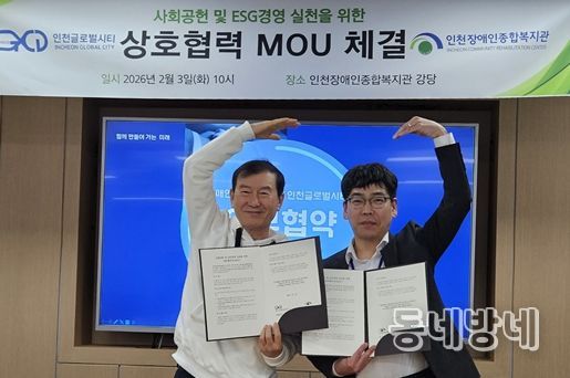 두 기관은 지난 3일 인천시장애인종합복지관에서 ‘사회공헌 및 ESG경영 실천 업무협약’을 하고 함께 장애인 지역사회 자립 지원과 복지 사각지대 해소, 맞춤형 사회공헌 프로그램 운영 등을 추진하는 데 뜻을 모았다.