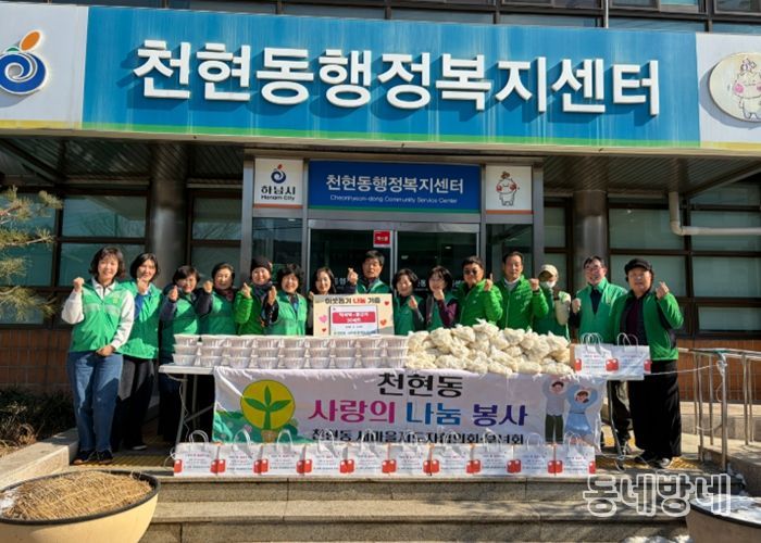 동네방네 김형규 기자 | 하남시 천현동은 지난 2월 3일 천현동 새마을협의회 및 부녀회 주관으로 관내 저소득층 50가구에‘사랑의 떡·물김치 나눔 행사를 실시했다'고 밝혔다.
