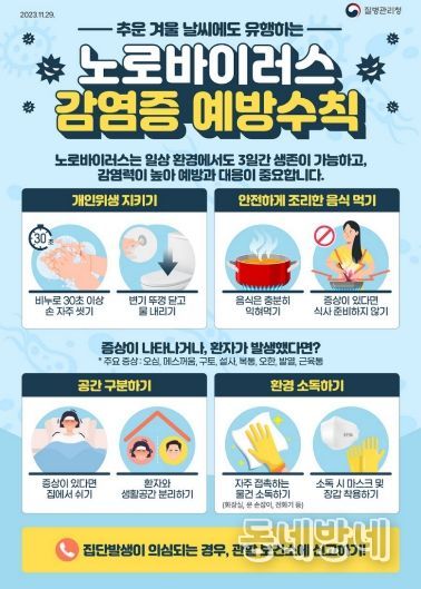 동네방네 김형규 기자 | 김천시는 최근 질병관리청에서 ‘노로바이러스 감염증이 10주 연속 증가하고 있다’고 발표함에 따라, 설 명절을 앞두고 겨울철 식중독과 노로바이러스 발생 위험이 커지고 있는 만큼 시민들에게 개인위생 관리와 예방수칙 준수를 강조했다.