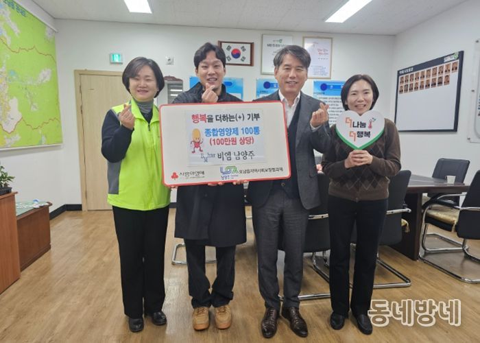 동네방네 김형규 기자 | 남양주시는 4일 유통 전문회사 비엠 남양주가 지역 내 취약계층을 위해 마련한 종합영양제 100통을 오남읍 지역사회보장협의체에 전달했다고 밝혔다.