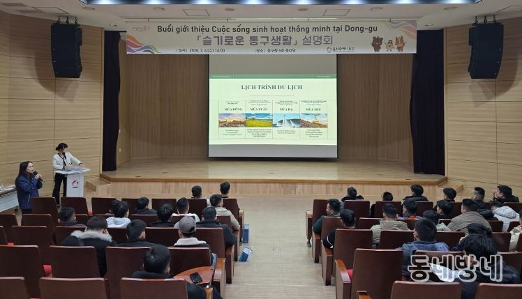 동네방네 김형규 기자 | 울산 동구는 2월 4일 오후 2시 동구청 5층 중강당에서 신규 입국한 베트남 국적 외국인 근로자 45명을 대상으로 지역 정착을 돕기 위한 ‘슬기로운 동구 생활’ 설명회를 진행했다.