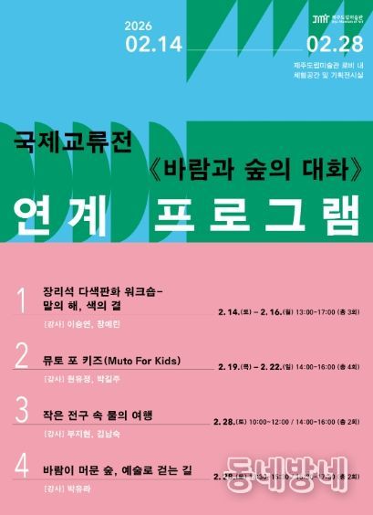 동네방네 김형규 기자 | 제주도립미술관(관장 이종후)은 오는 2월 14일부터 28일까지 2주간 ‘국제교류전 《바람과 숲의 대화》의 연계 체험프로그램’을 운영한다고 밝혔다.