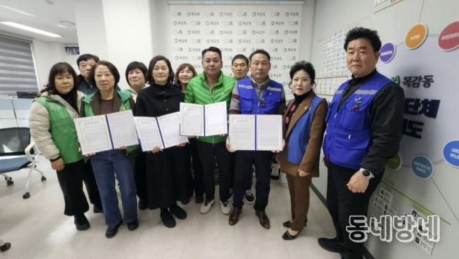 동네방네 김형규 기자 | 시흥시 목감동 행정복지센터는 지난 2월 3일 취약계층의 복지증진과 복지 사각지대 해소를 위해 동 행정복지센터 회의실에서 목감동 새마을남녀협의회 및 시흥시 처음처럼 봉사회 등 관계단체와 업무협약을 맺었다.