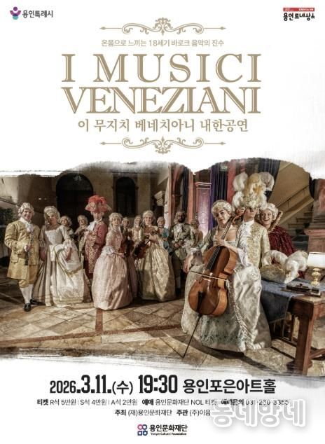 동네방네 김형규 기자 | 용인문화재단은 오는 3월 11일 용인포은아트홀에서 세계적인 바로크 앙상블 ‘이 무지치 베네치아니(I Musici Veneziani)’의 내한 공연을 개최한다.