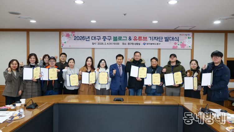 동네방네 김형규 기자 | 대구 중구는 4일 구청 상황실에서 ‘2026년 블로그·유튜브 기자단 발대식’을 개최하고, 구정 홍보 활성화를 위한 본격적인 활동에 들어갔다.