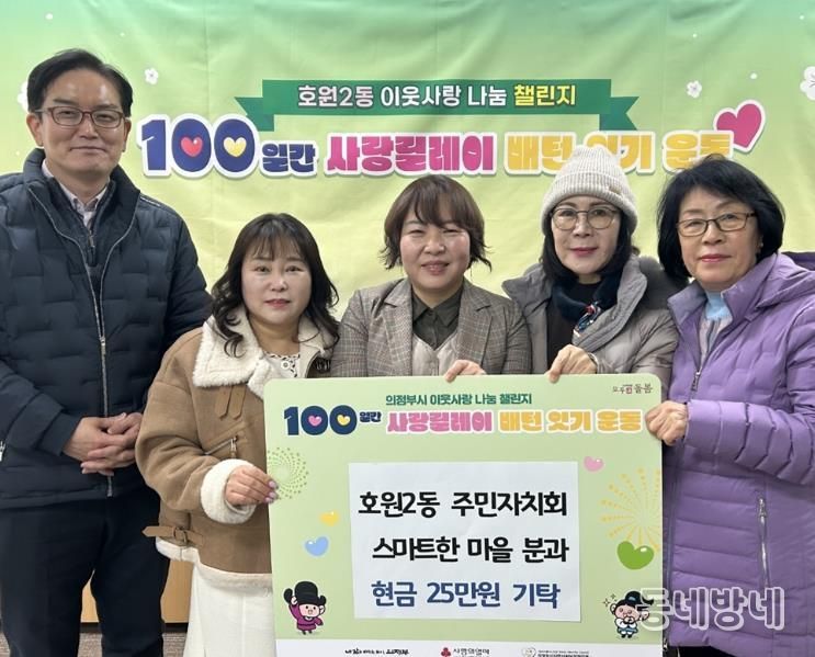 동네방네 김형규 기자 | 의정부시 호원2동주민센터는 지난해 12월부터 올해 2월까지 호원2동 주민자치회 회장 김규오, 부회장 이영배를 비롯한 아름다운 마을·스마트한 마을·살기 좋은 마을 분과가 지역 내 어려운 이웃을 돕기 위해 성금 50만 원, 쌀 50kg, 컵라면 10상자, 쌀국수 200인분, 사과즙 30박스를 기탁했다고 밝혔다.