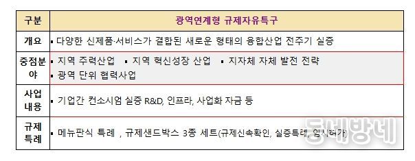 동네방네 김형규 기자 | 중소벤처기업부는 6일 비수도권 광역자치단체를 대상으로 ’26년도 ‘광역연계형 규제자유특구’의 신규 지정을 위한 특구 후보과제를 공모한다고 밝혔다.