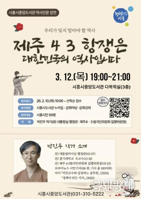 동네방네 김형규 기자 | 시흥시중앙도서관은 오는 3월 12일 오후 7시, 시민을 대상으로 역사 인문 강연 ‘제주 4ㆍ3항쟁은 대한민국의 역사입니다’를 운영한다.