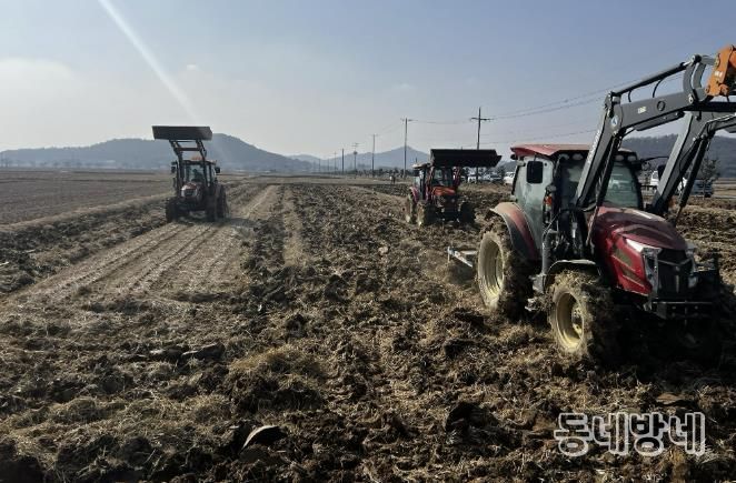동네방네 김형규 기자 | 영암군이 5일 학산면 천해마을에서 ‘왕우렁이 피해 예방 논 깊이갈이 시연회’를 개최했다.