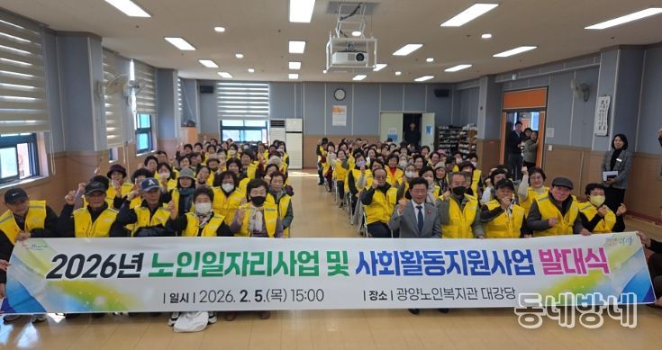 동네방네 김형규 기자 | 광양시 광양노인복지관과 광양실버주택복지관은 지난 2월 5일, 광양노인복지관 대강당에서 ‘2026년 노인일자리 및 사회활동지원사업 발대식 및 안전·소양교육’을 개최했다고 밝혔다.