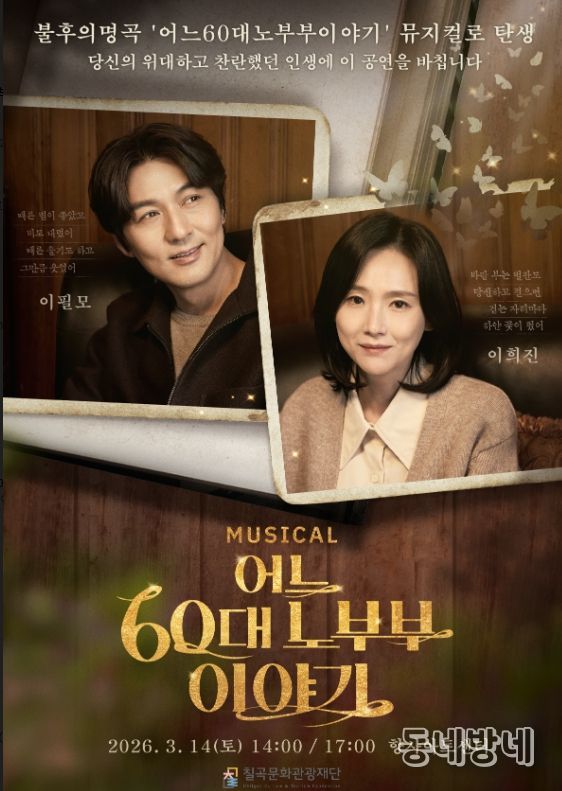 동네방네 김형규 기자 | (재)칠곡문화관광재단(이사장 김재욱)은 향사아트센터 공연장에서 '어느 60대 노부부 이야기' 뮤지컬 공연을 개최한다.