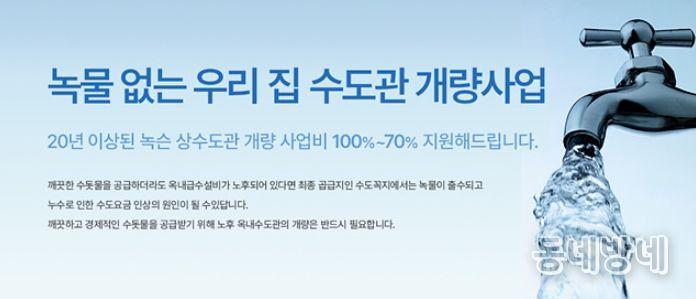 이번 사업은 노후된 급수관으로 인해 발생하는 녹물과 수압 저하 등 생활 불편을 해소하기 위해 추진되며, 신청은 오는 12월 18일까지 가능하다.