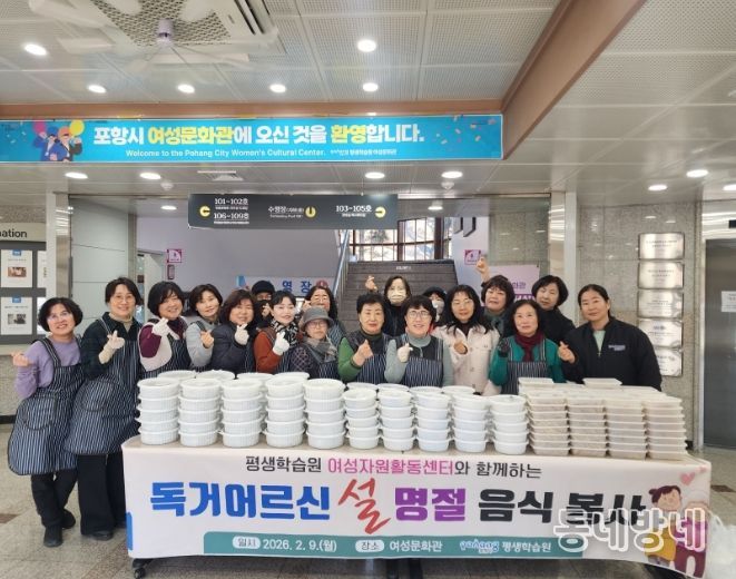 동네방네 김형규 기자 | 포항시 평생학습원 여성문화관 여성자원활동센터는 9일 설 명절을 맞아 지역 내 홀로 계시는 어르신들을 위한 ‘설맞이 명절 음식 봉사’를 실시했다.