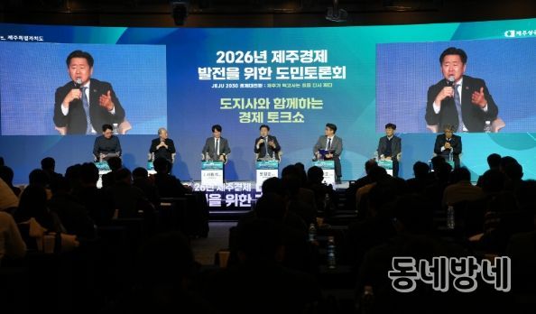 제주도와 제주상공회의소는 9일 오후 2시 한라컨벤션센터에서 ‘2026년 제주경제 발전을 위한 도민토론회’를 열었다.