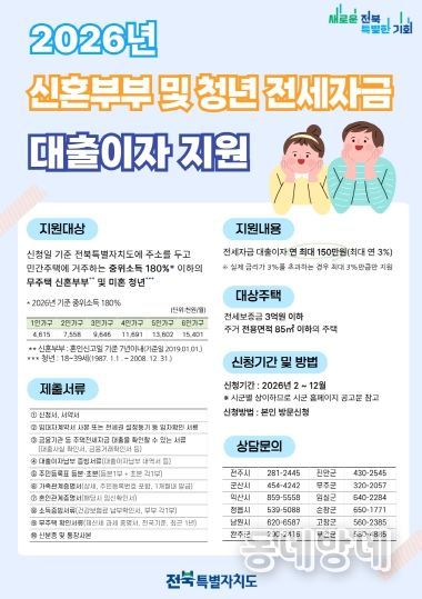 이번 정책은 주거 안정과 저출산 대응을 동시에 달성하기 위한 전략으로, 청년과 신혼부부가 전북에 안정적으로 정착할 수 있는 환경을 조성해 인구 감소 및 지역 소멸 위기 극복에 기여할 것으로 기대된다.