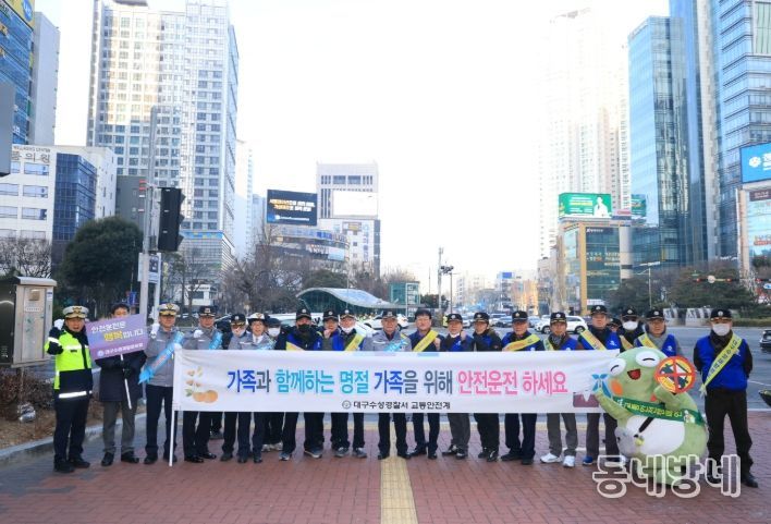 동네방네 김형규 기자 | 대구 수성구는 설 명절을 앞두고 12일 범어네거리 일대에서 수성경찰서(서장 최미섭)와 함께 ‘2026 설맞이 교통안전 합동 캠페인’을 실시했다고 밝혔다.