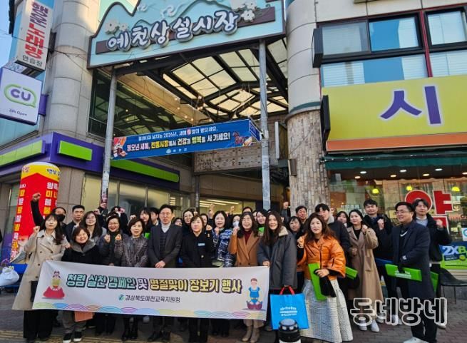 동네방네 김형규 기자 | 경상북도예천교육지원청은 2월 12일 예천읍 상설시장에서 직원들과 함께 설 맞이 전통시장 장보기 행사를 실시했다.