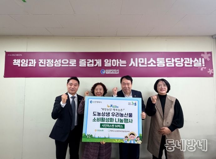 이날 행사에는 인천농협과 도농상생국민운동본부를 대표해 농협은행 인천시청지점 이진택 지점장과 인천민주화운동센터 이은주 센터장 등이 참석해 나눔의 의미를 함께했다.