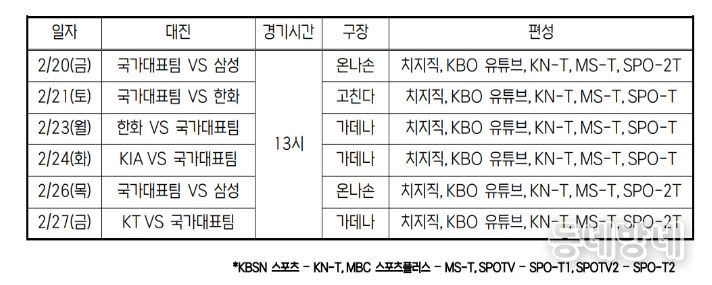 동네방네 김형규 기자 | 3월에 열리는 월드베이스볼클래식(이하 WBC)에 대비해 일본 오키나와에 훈련 캠프를 차리는 대한민국 국가대표팀의 평가전 일정과 중계가 확정됐다.