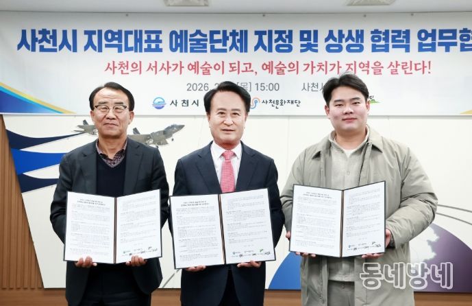 이번 협약은 문화체육관광부 주관 '2026 지역대표예술단체 지원사업' 선정을 계기로 ‘극단 장자번덕’을 사천시를 대표하는 예술단체로 공식 지정하고 행정·재단·단체의 유기적인 협력 체계를 구축하기 위해 마련됐다.
