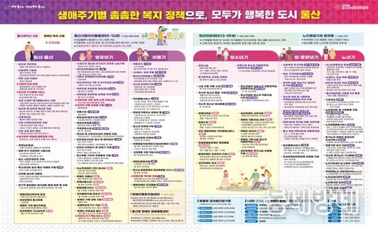 동네방네 김형규 기자 | 울산시가 시민들이 복지정책을 보다 쉽게 이해하고 활용할 수 있도록 ‘생애주기별 복지정책’ 도표 자료를 제작해 전 부서와 공공기관, 구군에 공유하고 온·오프라인 전방위 홍보에 나선다.
