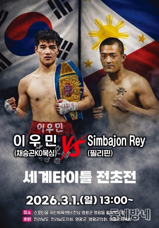 동네방네 김형규 기자 | 영광군은 28일부터 3월 1일까지 2일간 2026 전국생활복싱대회 및 이우민 세계타이틀 전초전을 스포티움 국민체육센터에서 개최한다고 밝혔다.