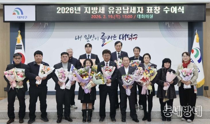 대덕구는 19일 구청 대회의실에서 ‘2026년 지방세 유공납세자 표창 수여식’을 열고, 체납 없이 성실히 세금을 납부해 온 개인과 법인, 단체를 격려했다고 밝혔다.