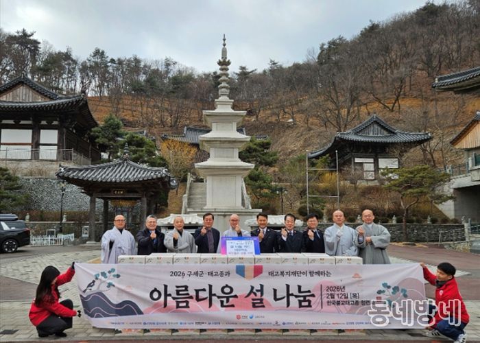 동네방네 김형규 기자 | 양주시 장흥면은 최근 한국불교태고종 청련사에서 구세군과 한국불교태고종, 태고복지재단과 함께 ‘2026년 아름다운 설 나눔 키트 전달식’을 개최했다.