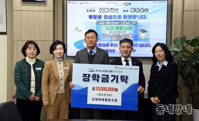 동네방네 김형규 기자 | 김제사랑장학재단은 지난 20일 김제원예농업협동조합(조합장 김광식, 이하 김제원예농협)이 지역의 미래를 짊어질 우수 인재 양성을 위해 장학금 1천만 원을 기탁했다고 밝혔다.