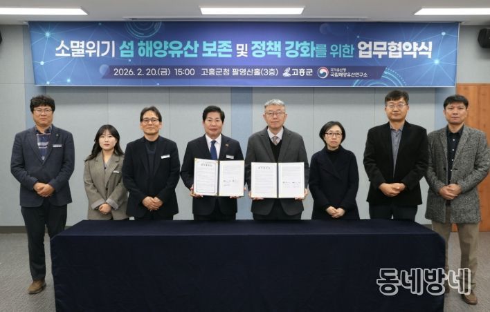 동네방네 김형규 기자 | 고흥군은 20일 군청 팔영산홀에서 국가유산청 국립해양유산연구소와 ‘고흥군 섬 해양유산조사 업무협약’을 체결했다고 밝혔다.