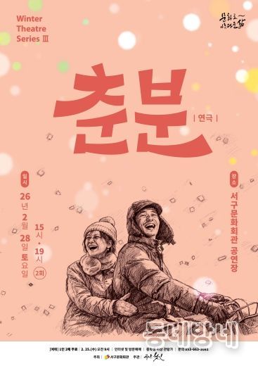 동네방네 김형규 기자 | 서구문화회관은‘Winter Theatre Seires(겨울 연극 시리즈)’마지막 순서로 극단 헛짓의 연극'춘분'을 2월 28일 오후 3시, 7시 (2회) 무대에 올린다.