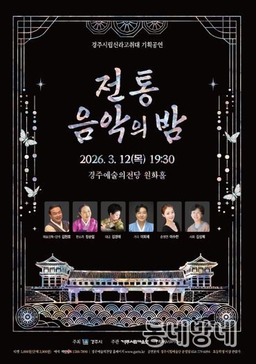 동네방네 김형규 기자 | 경주시립신라고취대가 오는 3월 12일 오후 7시 30분 경주예술의전당 원화홀에서 2026년 첫 기획공연 ‘전통음악의 밤’을 선보인다.