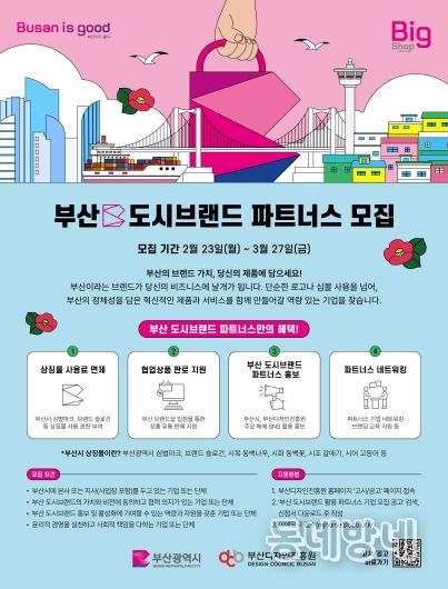 동네방네 김형규 기자 | 부산시와 (재)부산디자인진흥원은 23일부터 3월 27일까지 부산 도시브랜드를 활용한 상품과 콘텐츠를 함께 만들어갈 '2026 부산 도시브랜드 파트너스' 참여기업을 모집한다고 밝혔다.