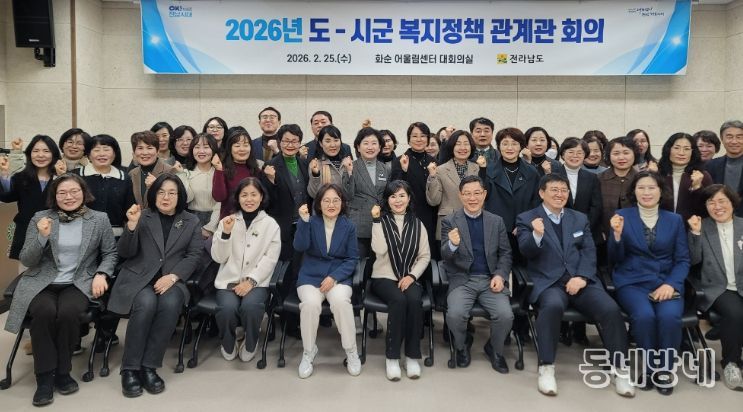 동네방네 김형규 기자 | 전라남도는 25일 화순 어울림센터에서 도와 시군 간 복지사업의 효율적 추진 및 소통 강화를 위한 ‘2026년 도-시군 복지정책 관계관 회의’를 열어, 모든 도민이 행복한 복지 전남 실현을 다짐했다.