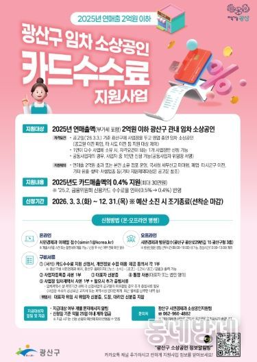 동네방네 김형규 기자 | 광주 광산구가 민생경제 회복을 위해 광산구 임차 소상공인 카드수수료 지원사업을 실시한다.