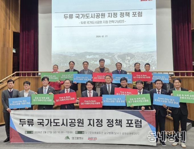 동네방네 김형규 기자 | 대구광역시는 2월 27일 두류공원 내 문화예술회관 달구벌홀에서 시민과 전문가 100여 명이 참석한 가운데 ‘두류공원 국가도시공원 지정 정책 포럼’을 개최했다.