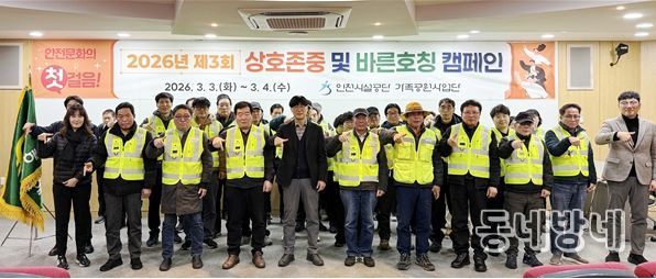 동네방네 김형규 기자 | 인천시설공단 가족공원사업단은 지난 3일, 기간제근로자 40여 명의 현장 배치에 맞춰 안전한 근무 환경 조성을 위한 '2026년 제3회 상호 존중 및 바른 호칭 캠페인'을 실시했다.