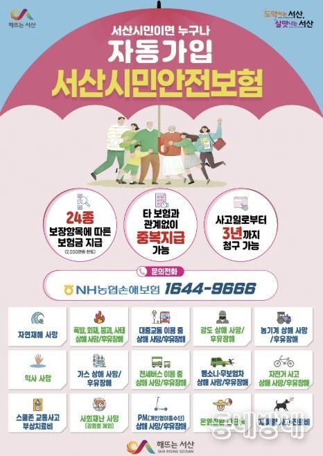 동네방네 김형규 기자 | 충남 서산시가 각종 재난 및 안전사고에 대비해 시민안전보험을 시행 중이라고 밝혔다.