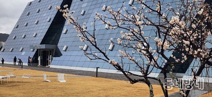 동네방네 김형규 기자 | 광양시 원도심에 위치한 전남도립미술관 앞 고목 매화가 개화하며 도심 경관에 활력을 더하고 있다.