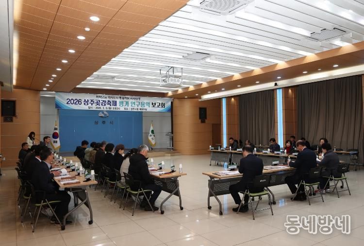 동네방네 김형규 기자 | 상주시는 3월 9일 시청 대회의실에서 상주시곶감축제추진위원회 위원, 상주시의원, 관계 공무원 등 35여 명이 참석한 가운데‘상주곶감축제’의 2026년 성과를 공유하고 향후 발전 방향을 모색하기 위해 2026 상주곶감축제 평가 연구용역 보고회를 개최했다.