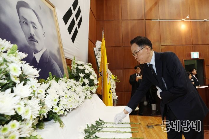 동네방네 김형규 기자 | 조성명 강남구청장이 3월 10일 도산 안창호 기념관에서 열린 도산 안창호 선생 서거 88주기 추모식에 참석해 헌화하고 추모의 뜻을 전했다.