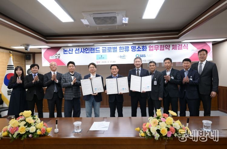 논산시는 17일 ㈜SBS A&T, 드라마 제작사 ㈜낭만크루와 ‘선샤인랜드 글로벌 한류 명소화를 위한 업무협약’을 체결했다고 밝혔다.