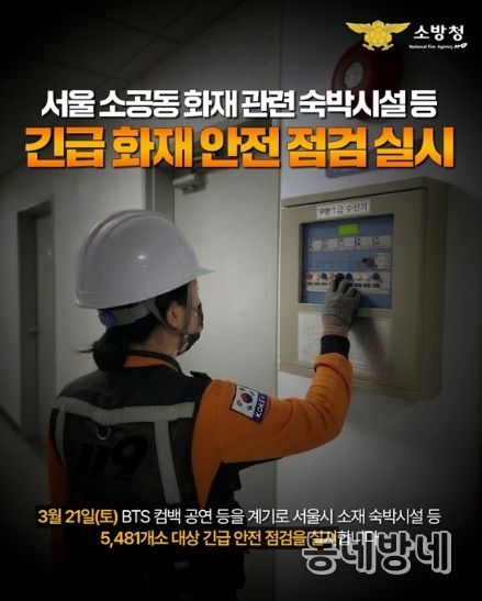 동네방네 김형규 기자 | 서울 소공동 화재 관련 숙박시설 등 긴급 화재 안전점검 실시