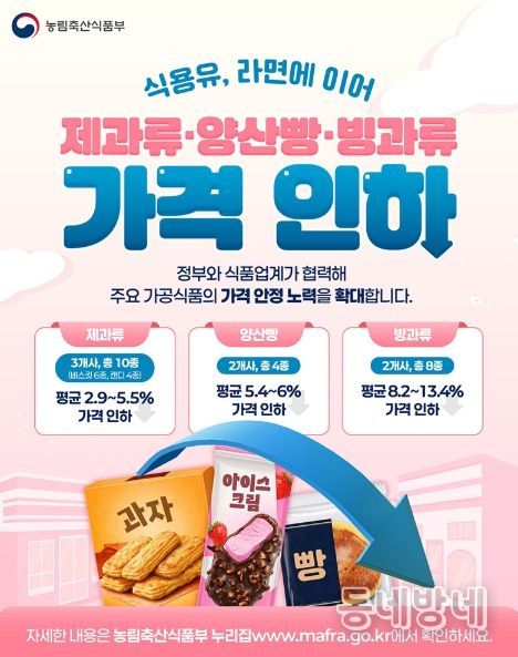 동네방네 김형규 기자 | 식용유, 라면에 이어 제과류·양산빵·빙과류 가격 인하