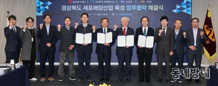 동네방네 김형규 기자 | 경상북도는 25일 의성군청 대회의실에서 샘표식품, 영남대학교 세포배양연구소, 의성군과 함께 ‘세포배양 배지 산업 육성을 위한 업무협약(MoU)’을 체결했다.