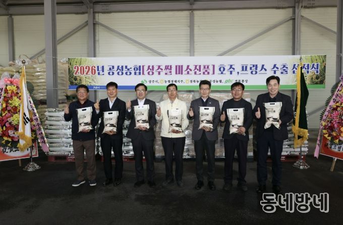 동네방네 김형규 기자 | 상주시는 3월 27일 공성농협 미곡종합처리장(RPC)에서 상주쌀 ‘미소진품’의 프랑스·호주 선적식을 진행하며 총 7.5톤 규모(프랑스 1.6톤, 호주 5.9톤)의 맛있는 미소를 해외 식탁으로 전달했다.