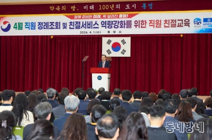 동네방네 김형규 기자 | 통영시는 지난 1일 시청 강당에서 4월 직원 정례조회를 열고, 주요 현안의 차질 없는 추진과 시민 안전, 민생 안정을 위한 행정 대응 방향을 공유했다.